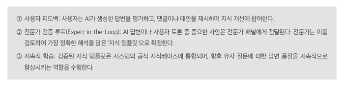 • 커뮤니티 인텔리전스 및 전문가 검증 결합