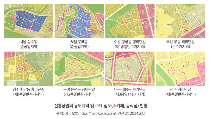 - 정인아, 서수정, 진태성, 유예슬. (2024). 지역상권 활성화를 위한 공간관리 방안. 건축공간연구원.