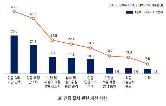 그러나 단기간 내 인증 절차 자체의 구조적 개선이 어려울 경우, 인증 기간이 장기화하고 있는 원인을 해소할 수 있도록 BF 인증 신청자들이 겪는 어려움을 다각적으로 지원할 방안을 마련해야 할 것이다.3)