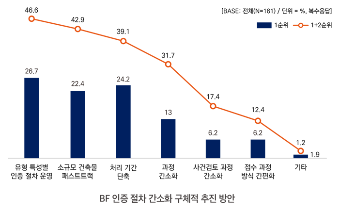 - BF 인증 제도의 접근성 및 편의성 향상 효과에 대해서는 긍정적 평가