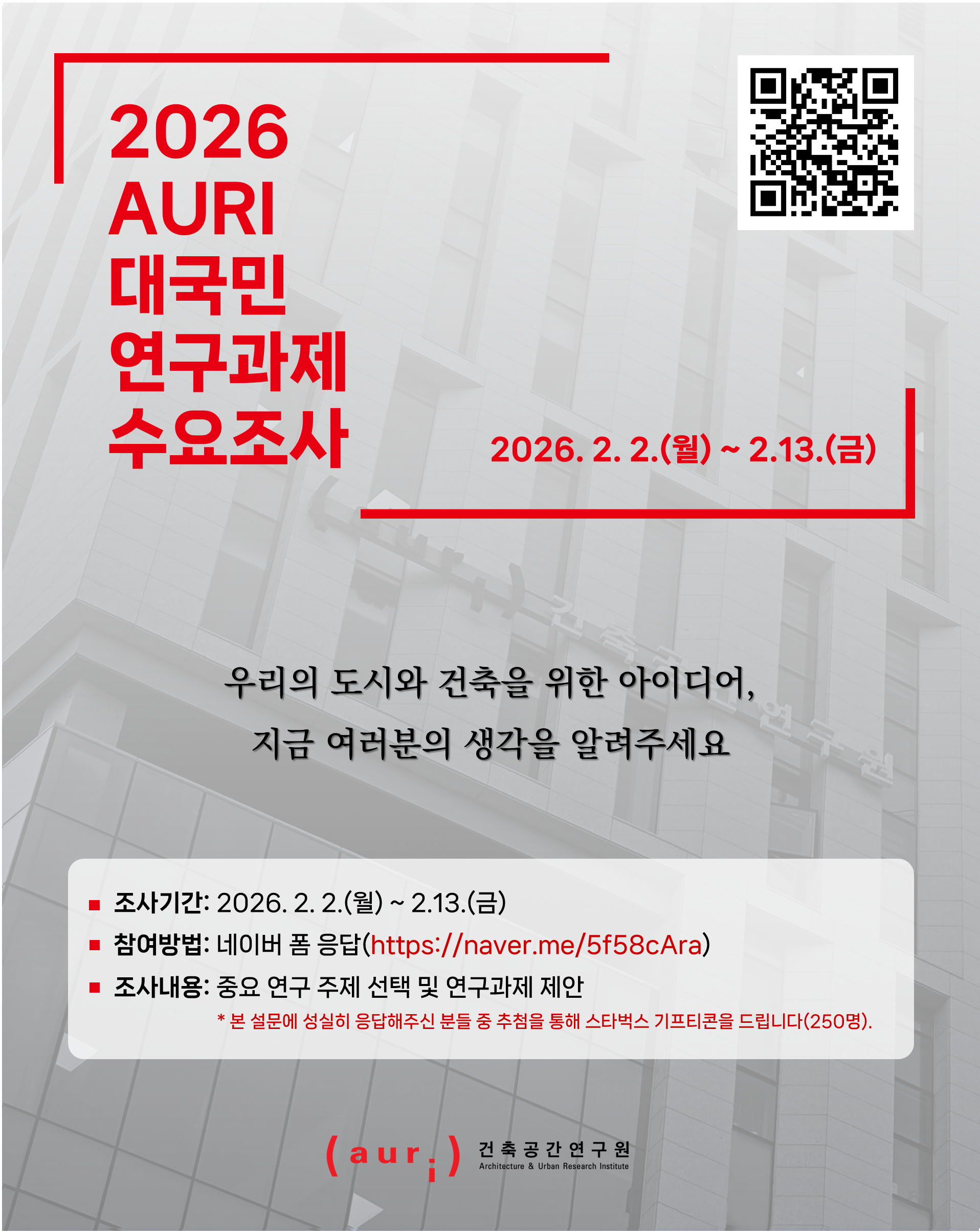 - 조사기간: 2026. 2. 2.(월) ~ 2. 13.(금)