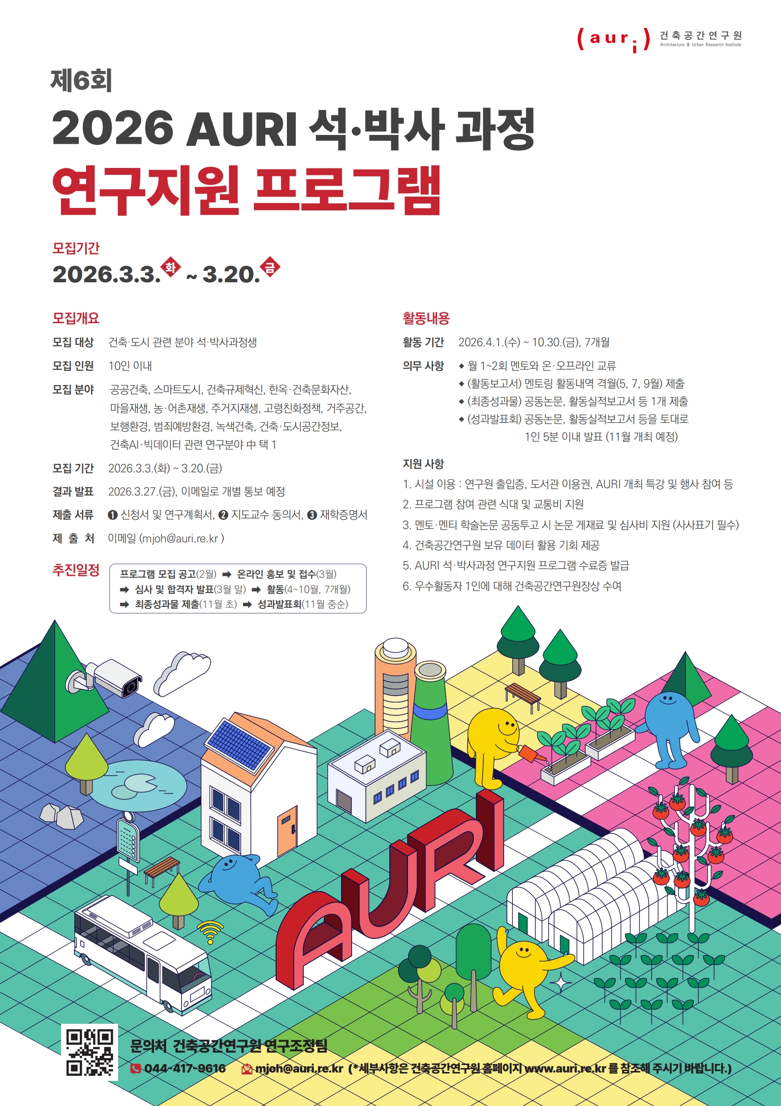 '2026 AURI 석·박사 과정 연구지원 프로그램' 운영 안내 및 신청자 모집
