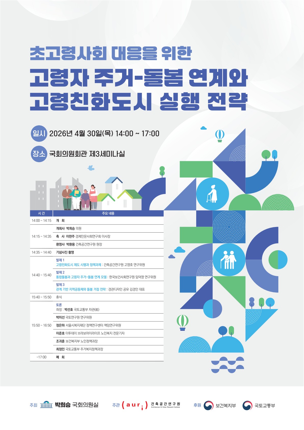 "초고령사회 대응을 위한 고령자 주거-돌봄 연계와 고령친화도시 실행 전략" 국회 토론회 개최