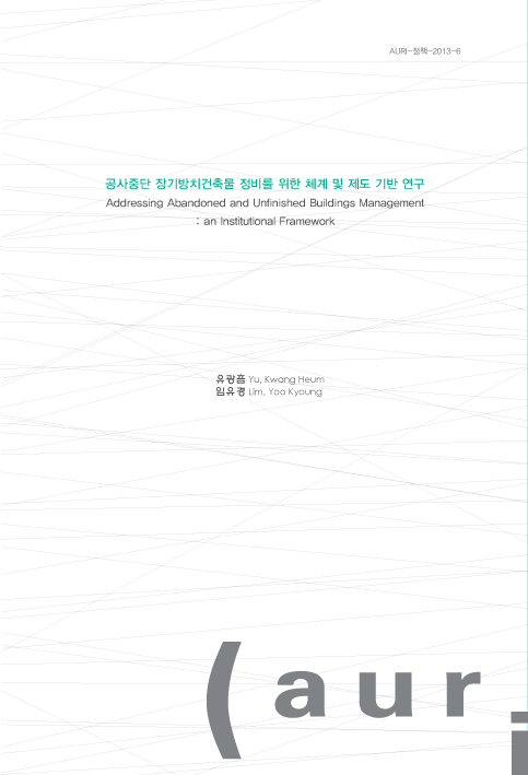 Yu, Kwangheum, Lim, Yookyoung. (2013). Addressing Abandoned and Unfinished Buildings Management : an Institutional Framework. Architecture & Urban Research Institute.