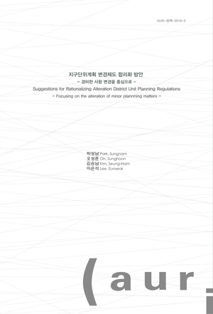 Park, Sungnam, Oh, Sunghoon, Kim, Seungnam, Lee, Eunseok. Suggestions for Rationalizing Alteration District Unit Planning Regulations: Focusing on the alteration of minor plannning matters.Architecture & Urban Research Institute. 2016