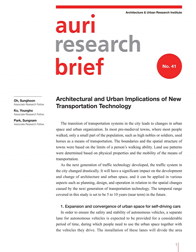 Oh, Sunghoon, Ko, Youngho, Park, Sungnam. (2018). Architectural and Urban Implications of New Transportation Technology. Architecture & Urban Research Institute.