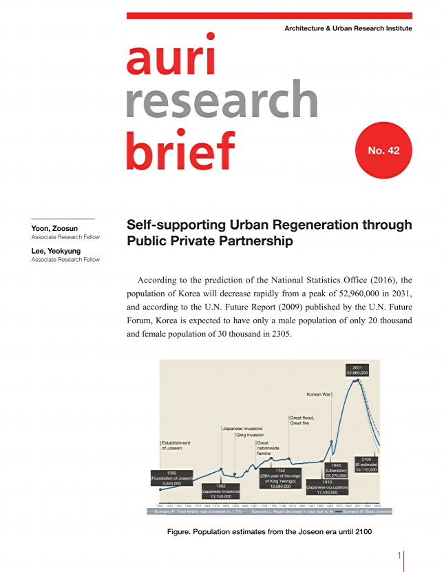 According to the prediction of the National Statistics Office (2016), the population of Korea will decrease rapidly from a peak of 52,960,000 in 2031, and according to the U.N. Future Report (2009) published by the U.N. Future Forum, Korea is expected to have only a male population of only 20 thousand and female population of 30 thousand in 2305.