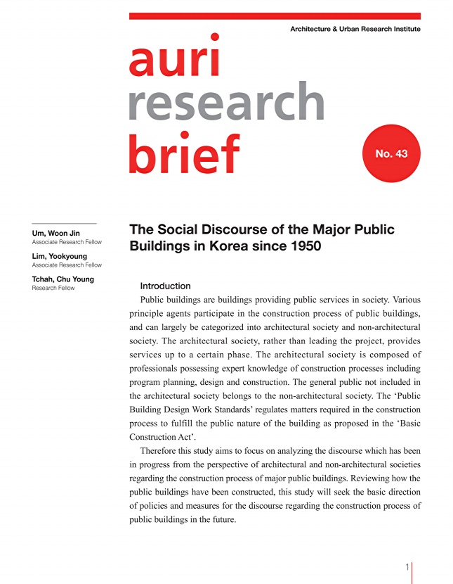 Therefore this study aims to focus on analyzing the discourse which has been in progress from the perspective of architectural and non-architectural societies regarding the construction process of major public buildings. Reviewing how the public buildings have been constructed, this study will seek the basic direction of policies and measures for the discourse regarding the construction process of